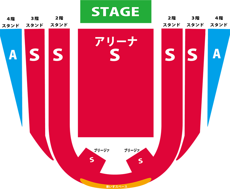 - ※車いすのままご鑑賞いただける「車いすスペース(S席料金)」は2階スタンド席最後列です。