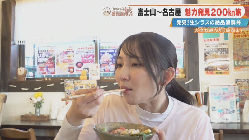 友廣アナは、初めて食べる生シラスを頬張ります。「すごい、プリップリ!生きているかくらいのプリプリ感!一切臭みがない!」と目を丸くします。