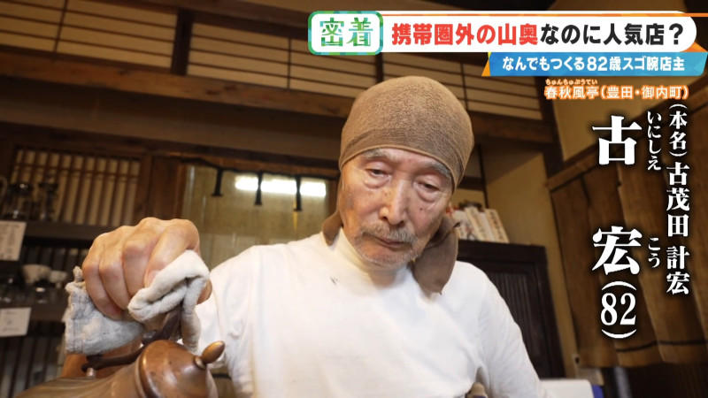 なかなかこだわりのありそうなオーナーの古宏さんは、82歳。オーナーが作る料理は、山奥でもわざわざ食べに来たいというメニューばかりです。