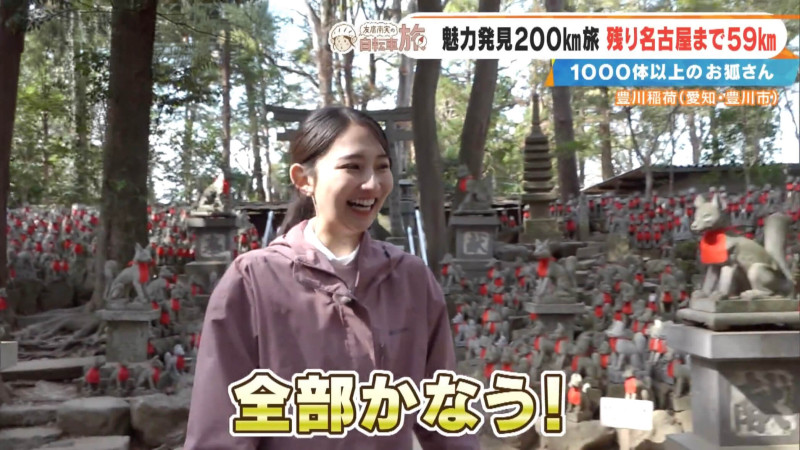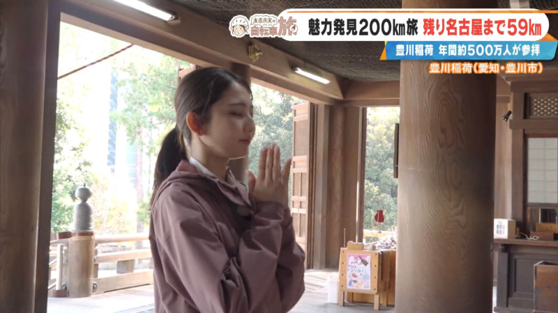 友廣アナは「自転車旅が長く続いて、そして東海地方の皆さまが元気に過ごせるように。そして私のアナウンス能力も向上しますように」とお参り。いろいろ神頼みしましたが、願い事の半分以上は本人次第。「願いをかなえるために頑張ります!」と意気込みます。