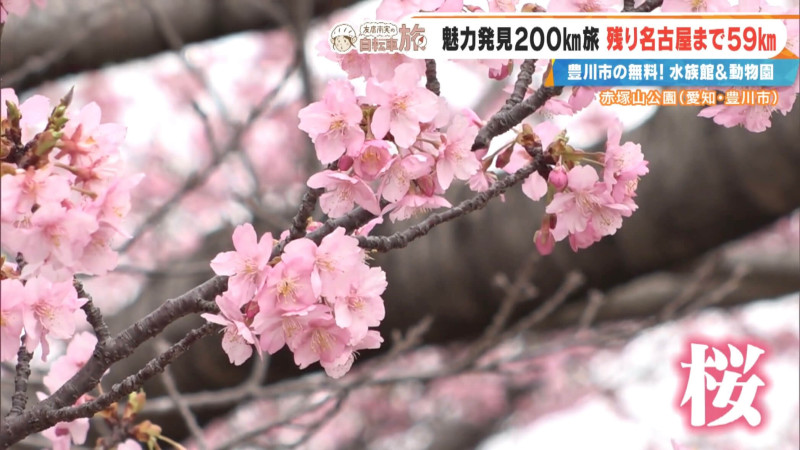 ゴールまで残り約59㎞。午前9時30分、スタートの三保松原から約141㎞地点から出発。寒空を走り続けた今回の自転車旅ですが、この日は午前10時前で気温13℃。友廣アナは「季節の移り変わりが早い。春の訪れはとってもうれしいです!」と軽快に進んでいきます。