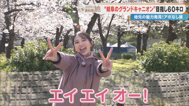 今回は、桜が咲く名古屋市昭和区の「鶴舞公園」からスタート。目的地は約60㎞先の岐阜・川辺町の遠見山。遠見山の山頂から見る深緑の飛騨川に浮かび上がる絶景は“岐阜のグランドキャニオン”と呼ばれているのだとか。2年目を迎えた自転車旅、初心に戻ってパワフルに元気に頑張ります!