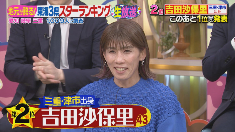 「誇りに思う東海3県スターランキング」第2位は、三重・津市出身の元レスリング選手、吉田沙保里さん。調査では「イベントの時に近くで見た。勝てないなと思った」「三重のスポーツ選手の中で一番。霊長類最強と言われていた」との声が。オリンピック3連覇、世界大会16連覇、個人戦206連勝など驚異的な記録を打ち立て、2012年には国民栄誉賞を受賞しました。