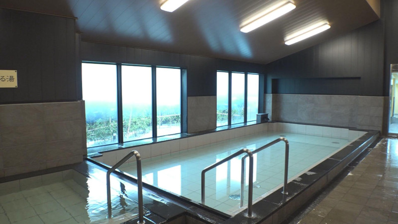 湯の瀬の温泉は、中に小さな浴槽と大浴場、外には露天風呂。山口さんによると、榊原温泉はアルカリ性単純温泉で、古い角質を落とし、美肌効果が期待されるのだとか。