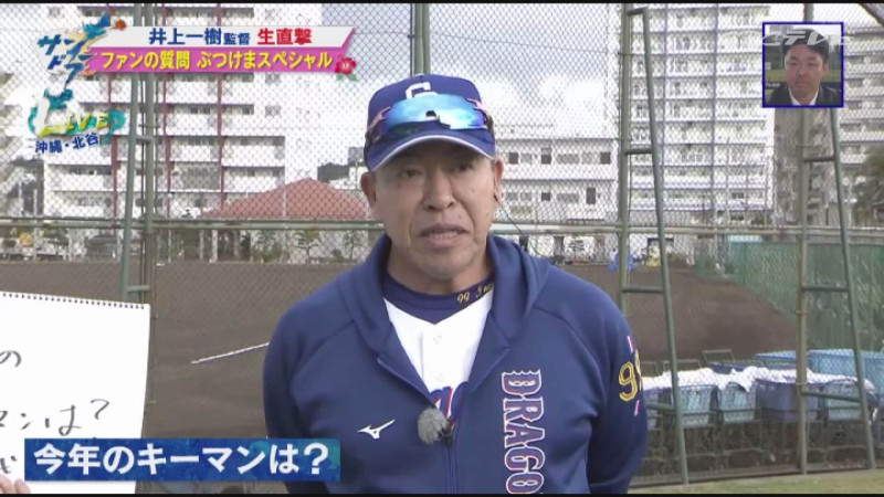 野球ファンにとっては長かった冬を越えて、いよいよ球春到来!キャンプ初日の熱気をそのままに、井上一樹監督にファンから集まった質問に答えてもらった。