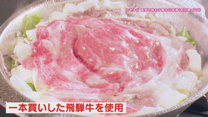 イチオシのメニューは、「特選黒毛和牛とろろ鍋」(1人前3,500円/要予約)。メインのお肉は、1本買いしたA5ランクの飛騨牛のリブロースを使用。他に、白菜や豆腐、鶏肉などが入っており、牛の甘みと鶏出汁の相性は抜群です。