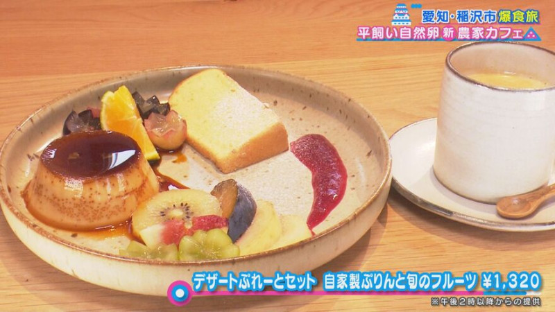 また、歩荷の親鳥を使った「らんちセット 目玉バーグ」(2,200円)や、「デザートぷれーとセット 自家製ぷりんと旬のフルーツ」(1,320円/午後2時以降からの提供)もオススメです。