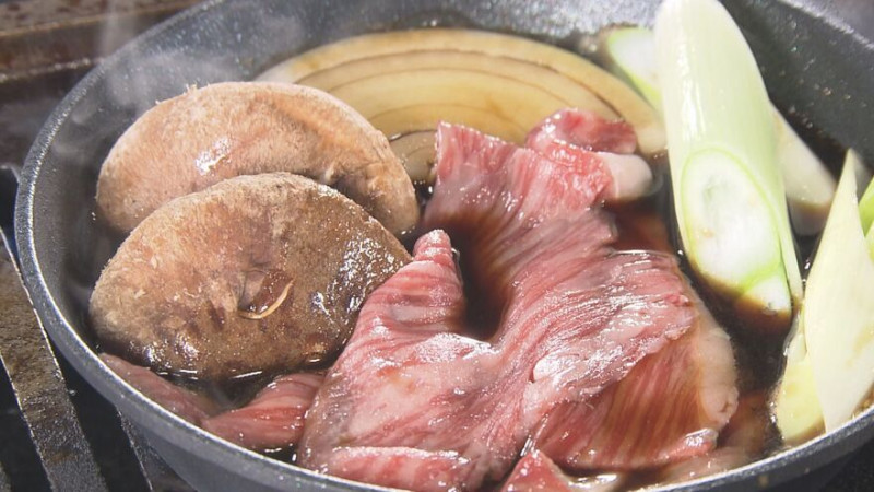 また、「和牛すき焼き」(1,680円)もオススメ。専用の鉄板をコンロの上にのせて店主オリジナルの割り下で焼き、卵につけていただきます。お肉を1枚から注文できるので、お好みのお肉をすき焼きに入れることも。ふだんはすき焼きに入れないような部位も、すき焼きで楽しめます。