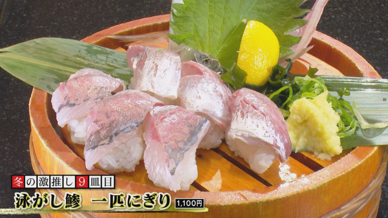 さらに、「泳がし鯵(あじ) 一匹にぎり」(1,100円)は、職人の腕が光る珠玉の一皿。新鮮な鯵は血が回っていないので、身は白く美しいのが特徴。鮮度抜群だからこそのコリコリ食感が楽しめます。余った骨を無料でせんべいにしてくれるのも、うれしいポイント!