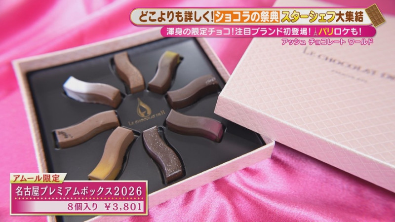 日本最大級のショコラの祭典「アムール・デュ・ショコラ」が、名古屋・中村区のジェイアール名古屋タカシマヤにて開催! (※2026年2月14日(土)まで)展開面積は過去最大、限定品も過去最多の約180種類と目白押し。(※先行販売含む)世界中から約150ブランド、約2700種類が大集結する商品の中から、アムールならではの限定品をご紹介します。