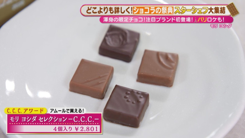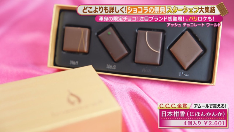 味覚の魔術師・土屋シェフの魅力を存分に感じられる新作は、日本の素材とチョコレートの融合がテーマのボンボンショコラ。中でも、「C.C.C.」で金賞を受賞した「スペシャリテ2026」(4個入り 2,751円)はイチオシ!