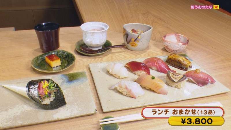 さらに、ベニズワイガニが入ったあんかけ仕立ての「茶碗蒸し」に、まるでクレームブリュレのような味わいの「玉子」と豪華。握りと料理全13品の「ランチ おまかせ」が、3,800円でいただけます。