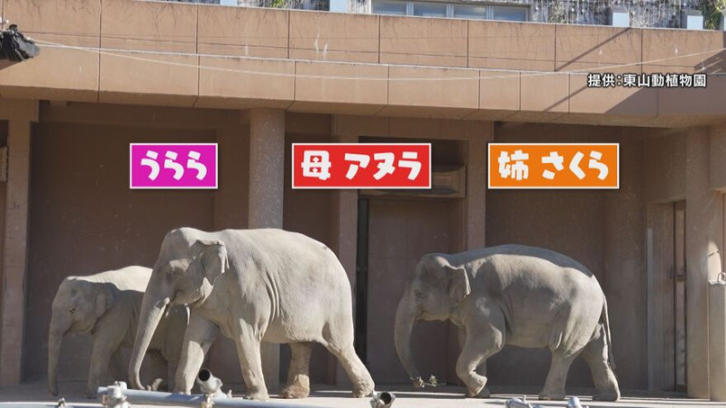 また、「アジアゾウ」では新たな食事方法がスタート。ゾウ本来の動きに近づけるため、あえて鼻を伸ばさないと届かない位置に草が設置されているので、母・アヌラのダイナミックなもぐもぐ姿が見られます。子のうららとさくらは草に届かないため、母が落とした草を食べる愛くるしい姿も。