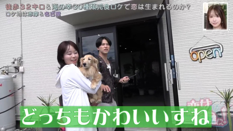 海沿いにあるカフェを見つけた2人は、海の幸が食べられるメニューを探すことに。ゆうなが店の看板犬と触れ合っていると、ゆうまが「どっちもかわいい」と一言。