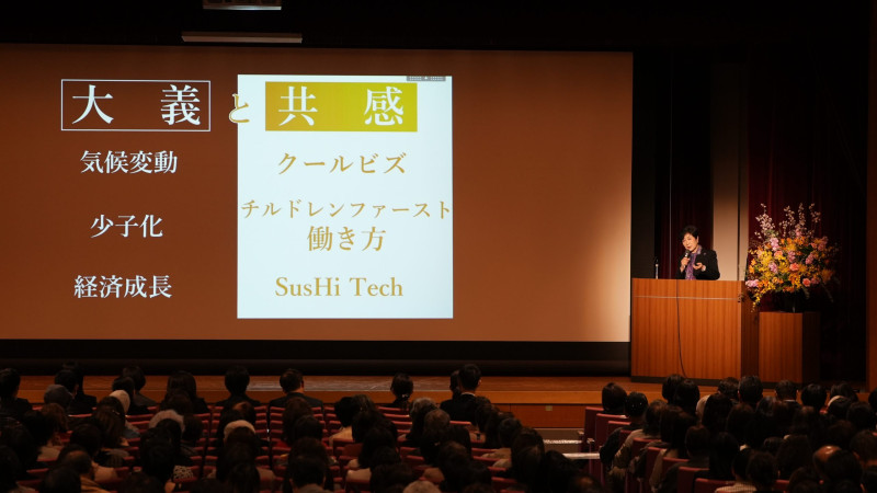 冒頭では、愛知県知事・大村 秀章氏が挨拶。都知事登壇への感謝とともに、愛知県におけるワークライフバランス(WLB)推進の取り組みや、女性の活躍について東京都との連携を強化していく方針が示されました。