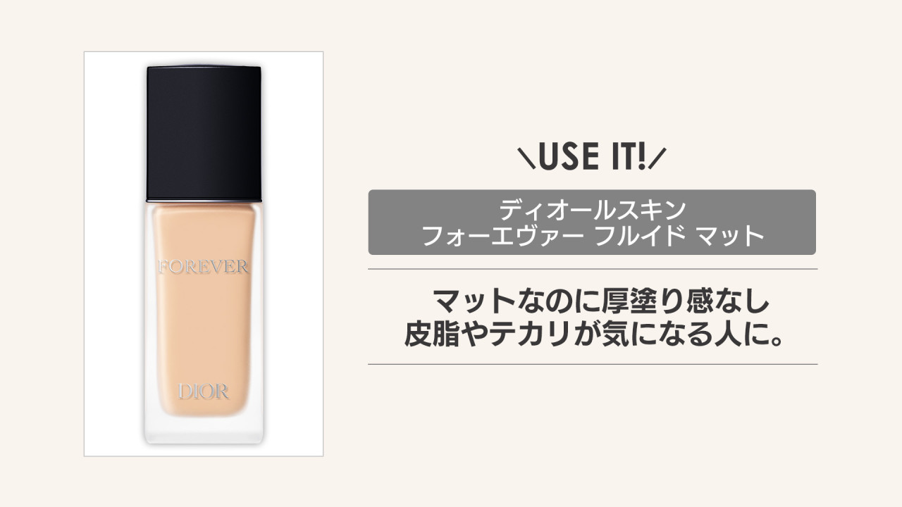 ● フルイド マット:皮脂やテカリが気になる人に。マットなのに厚塗り感なし。