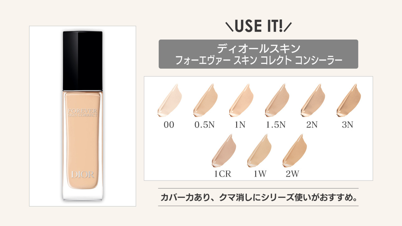クマやくすみを放置すると、顔がぐっと疲れた印象に見えてしまいます。撮影時に限らず、大切な日はクマをカバーしておいたほうが健康的に見えるのでおすすめです。