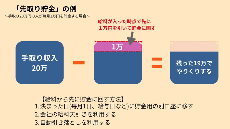 おすすめなのは、先に貯金してから生活する方法「先取り貯金」です。