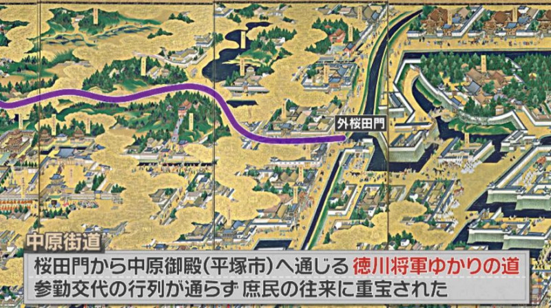 平安時代から存在し、江戸城から徳川の中原御殿(なかはらごてん)があったとされる現在の神奈川県平塚市を結んだ東海道の脇往還(わきおうかん)「中原街道(なかはらかいどう)」。