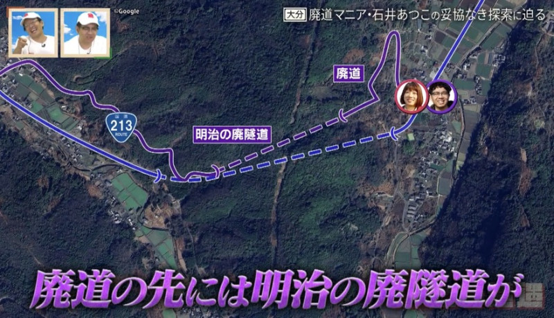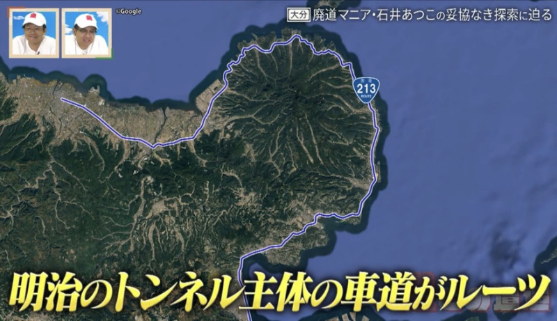 石井さんと昴生が訪れたのは、大分県の北東部に位置する国東(くにさき)半島。海岸沿いには国道213号が走り、そのルーツは明治時代に造られたトンネル主体の車道。幾度もの改修を経て現在の姿となりましたが、今もなお、当時の面影を色濃くとどめる旧道や隧道が数多く残っています。