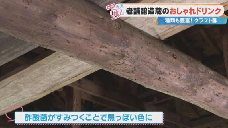 「この蔵には酢酸菌がたくさん住みついている。柱とかへりとか白い壁も黒っぽい色になっている」