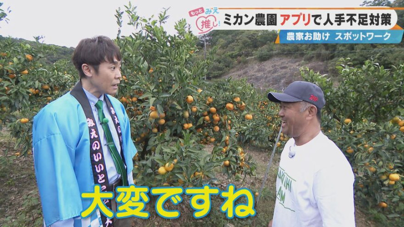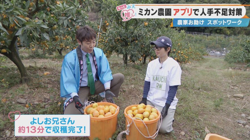 三重県御浜町の「かきうち農園」では、ミカンの収穫シーズン真っ盛り。18ヘクタールの広大な畑に約1万本のミカンの木が実をつけているものの、従業員8人だけでは手が回らないのが現状です。そこで注目されているのが、働きたい人が自分の都合に合わせて参加できる「スポットワーク」という新しい働き方。よしお兄さんが実際に収穫作業を体験し、農業分野での人手不足解消に向けた取り組みを取材しました。