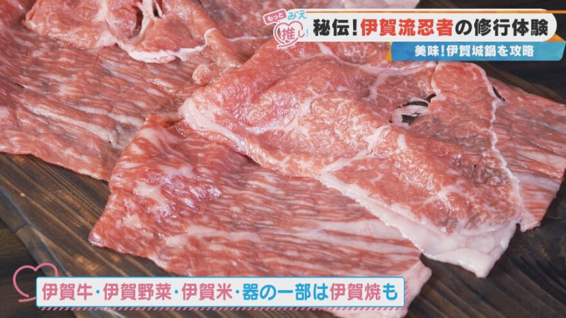 これはディナーコース「万川集海 伊賀城鍋膳」で、伊賀牛のしゃぶしゃぶをはじめ、伊賀野菜や伊賀米、食器の一部には伊賀焼も使われている伊賀尽くしの料理です。さらに驚きなのは、このお城が5段重になっていて、鍋の蒸気を利用した料理が味わえること。