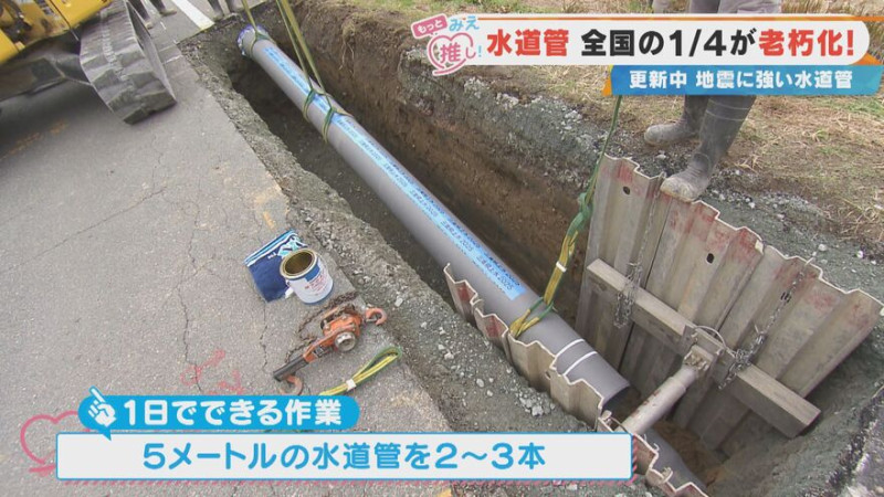 しかし、その長い水道管には大きな問題があります。なんと全国の水道管の4分の1が、40年以上経過した老朽管。水漏れや破裂、道路陥没など、大規模な事故の可能性が高まっています。