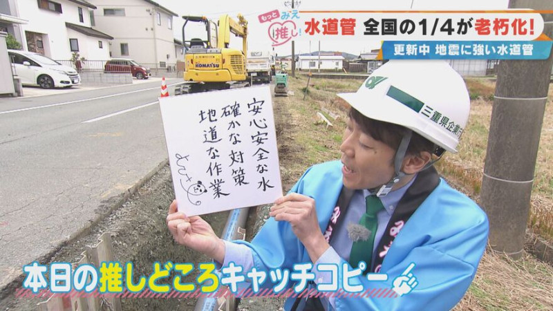 こうした被害を防ぐため、三重県では計画的に地震に強い水道管に更新する工事を進めています。松阪市内の工事現場を訪れると、掘削された地面から錆びた老朽管が取り出され、新しい水道管への交換作業が行われていました。