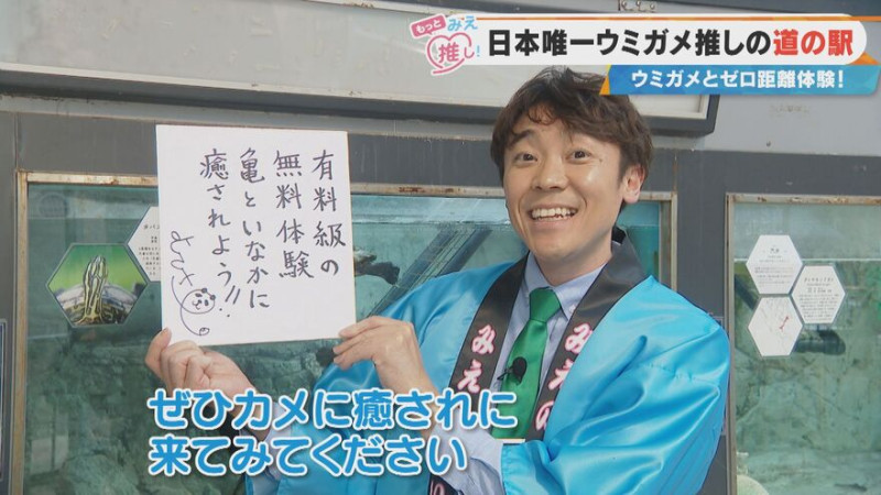 三重県最南端に位置する「紀宝町」。ウミガメが産卵のために海岸へ上陸することで知られるこの町には、なんと日本で唯一ウミガメを飼育している道の駅があります。今回はよしお兄さんが、施設の魅力をレポートしました。