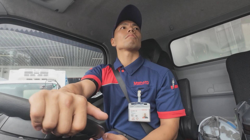 ところ変わって、こちらは愛知県飛島村に本社を置く「名正運輸」。ドライバーとして勤務する平田大輔さんは“マッチョドライバー”。