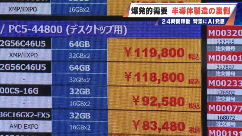 “半導体”に爆発的需要 メモリー価格は「半年で4倍」に… AIの発展で一般向け製造は減少 工場は24時間稼働でも需要に追い付かず