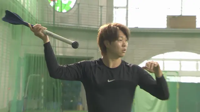 まだ暗い屋内練習場では、ドジャースの山本由伸投手直伝という「やり投げ」のトレーニングで体を温め、初日に臨んだ。