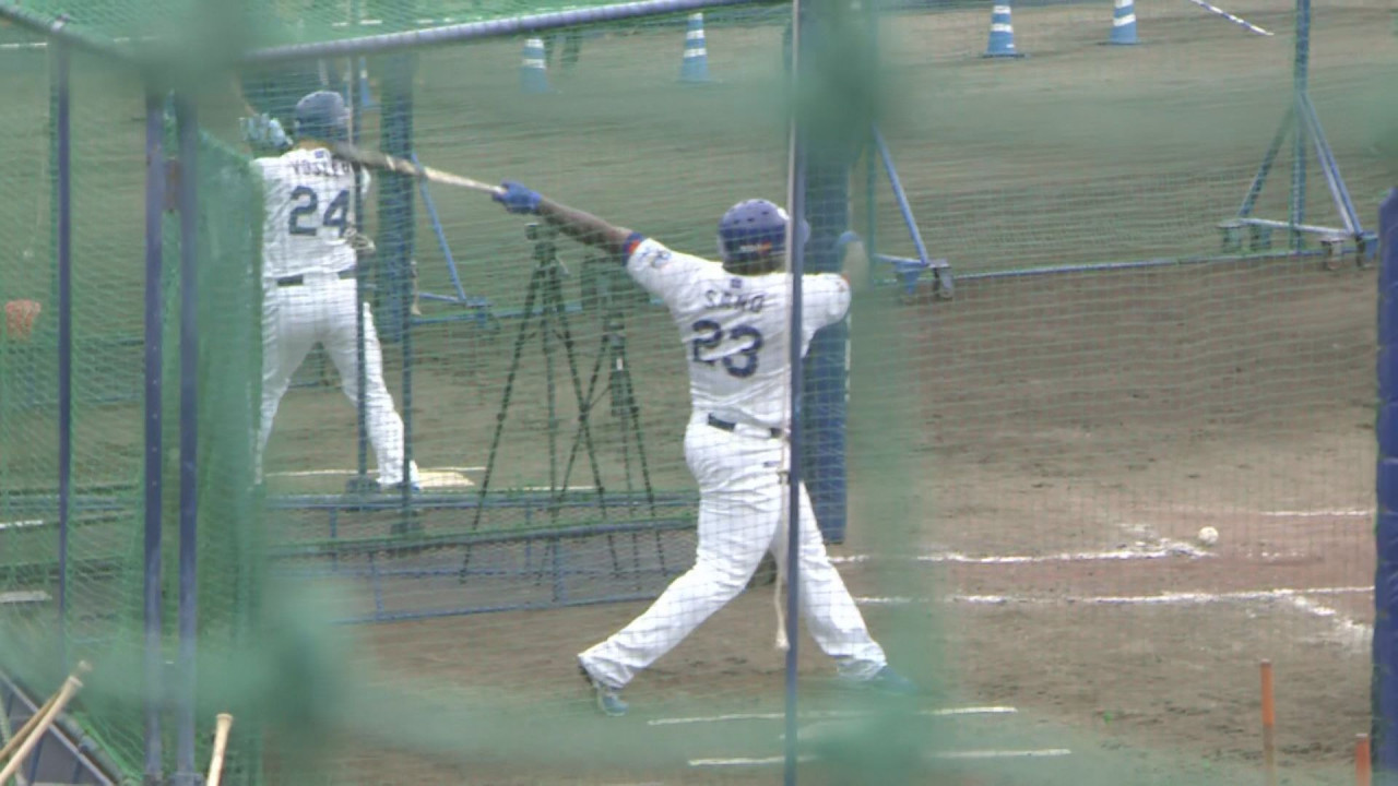 チームに、もう一つの大きな刺激を与えているのが、新外国人のミゲル・サノー選手だ。メジャー通算164本塁打の実績を誇る大砲は、キャンプ初日のフリー打撃で、12本の柵越えを披露。この日も快音を響かせ、スタンドインで観客を沸かせた。