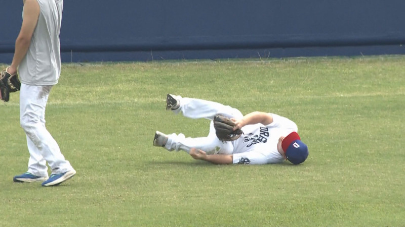 打球を全力で追いかけ捕球するハードな練習メニューで、細川成也選手は必死に打球を追いかけた末にグラウンドに倒れ込む場面も見られた。
