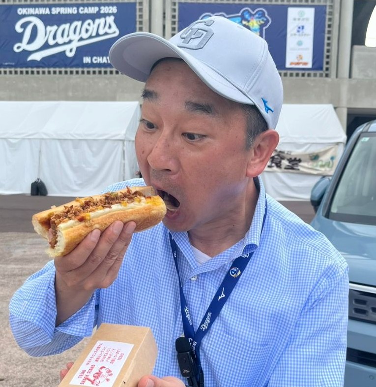 CBCの宮部アナウンサーも満面の笑みでホットドッグを頬張り「キャンプ終盤まで乗り切れそう」と、取材で恩返しすることを誓った。