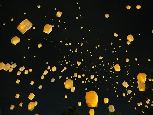 ランタンには紐が付いていて、飛ばしてしまうのではなく凧揚げのような感じで最後は持ち帰るようになっていました。ゴミ問題などもちゃんと考えられているのでしょう。曇り空だったのでさほど暑さも感じず、思い出の1日となりました」(Aさん)