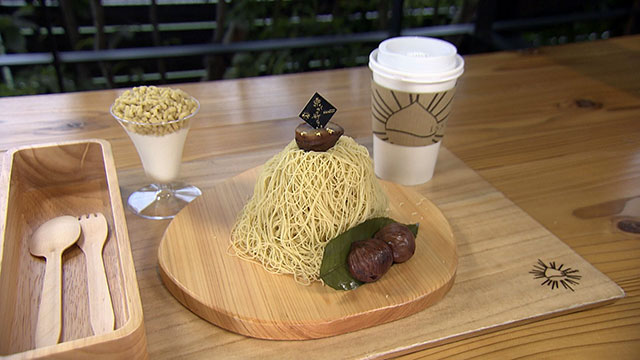 中津川市の老舗和菓子店「一茶堂」の三代目が手掛ける栗スイーツ専門のカフェ。