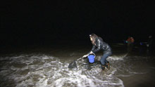 新月前後の夜、海岸に打ち上げられ