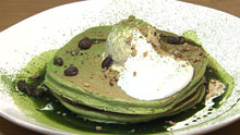 2階のカフェで、期間限定でしか販売されなかった超人気パンケーキがこの春から定番メニュー化。新しく「抹茶パンケーキ」も登場!