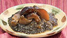 自慢の原木椎茸を使った最長2カ月待ちの人気お取り寄せグルメは干し椎茸にした原木しいたけを最高級のあおさのりの佃煮と合わせたまさに、山と海の宝が一つになった商品です。