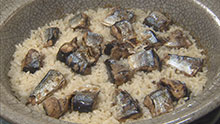 予約限定の裏メニューが飛騨産のお米“龍の瞳”で炊く土鍋サンマごはん!北海道産のサンマの脂が大粒の龍の瞳ひと粒ひと粒に絡み、口に入れた瞬間に甘みが広がる。
