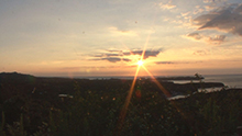 志摩市パールロードにある的矢展望台から1年に10日ほど、だるま朝日が見られる。