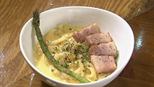 連日すぐに売り切れるため“まぼろしのメニュー”といわれるのが、和製カルボナーラ。生パスタのアルデンテをイメージした1日10食限定の特製うどん。