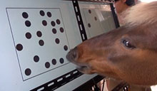 コンピューターのタッチパネルを使って言葉や数を学ぶシステムを研究チームがウマに応用。