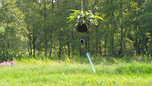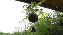 旧盆が過ぎた8月23日は二十四節気の「処暑」。厳しい暑さも峠を越える頃。まだまだ続く残暑に涼を求めた日本人の知恵が「釣忍(つりしのぶ)」。山間の谷筋に生えるシノブというシダの仲間を苔玉のように生やし、風鈴を釣るしたもの。