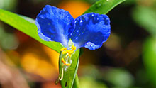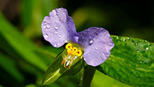 この頃身近に見かける青いツユクサの中には、まれに色変わりの「ウスイロツユクサ」が現れる時も。「薄色」とは古の高貴な伝統色の一つ、薄紫のこと。