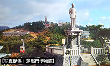愛知県蒲郡市の三谷温泉と弘法大師像が立つ