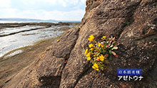 寒風吹きすさぶ荒磯には、日本固有種のアゼトウナが、健気に黄色い花を咲かせる。