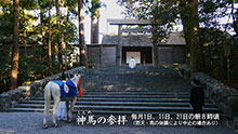 伊勢神宮では毎月1日、11日、21日の朝、皇室から献納された「神馬(しんめ)」が内宮外宮それぞれの正宮へ参拝する。